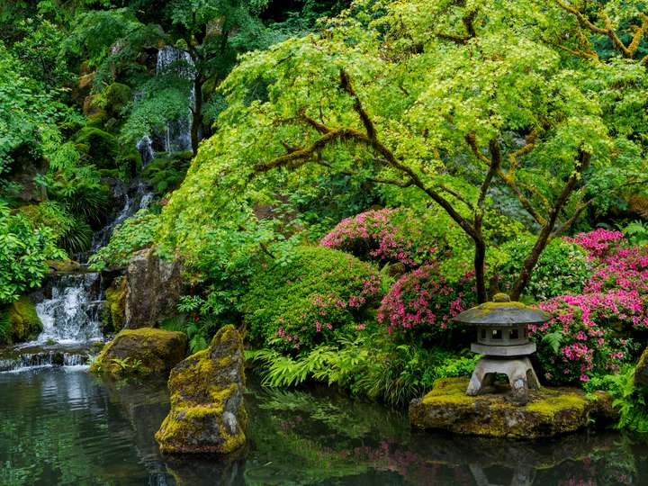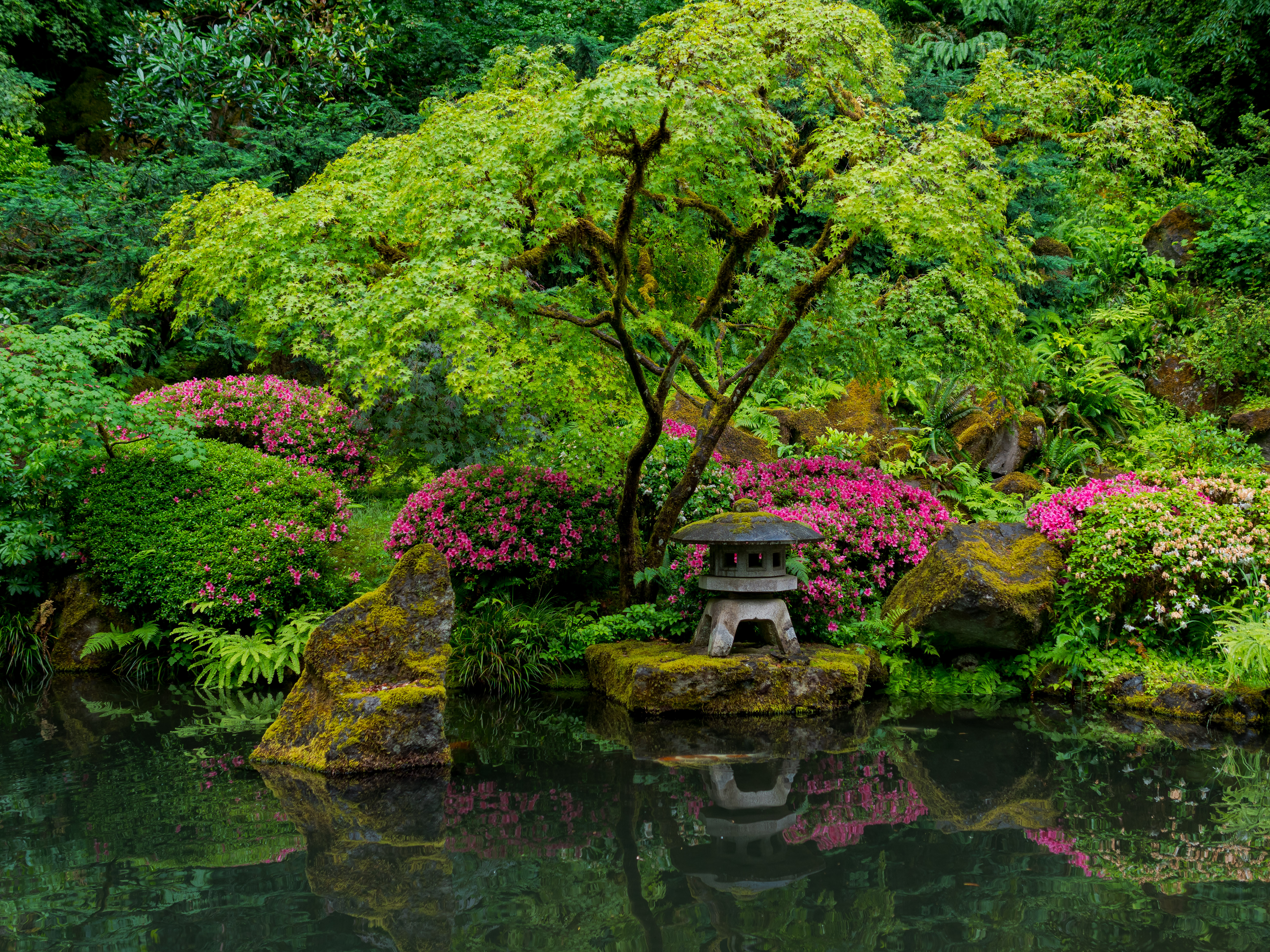 На фоне некоторой потрепанности центральных улиц, Японский сад - это настоящий эстетический оазис. Вход сюда тоже платный - $22 с человека - чуть дешевле, чем в музее, но почти также красиво. Задуманный как символ культурных связей между Японией и Орегоном сад спроектировал профессор Токийского Сельскохозяйственного Университета в 60-х годах двадцатого века. По многочисленным отзывам японских посетителей - это лучший пример паркового дизайна из страны восходящего солнца за её пределами.