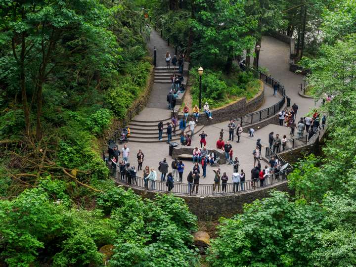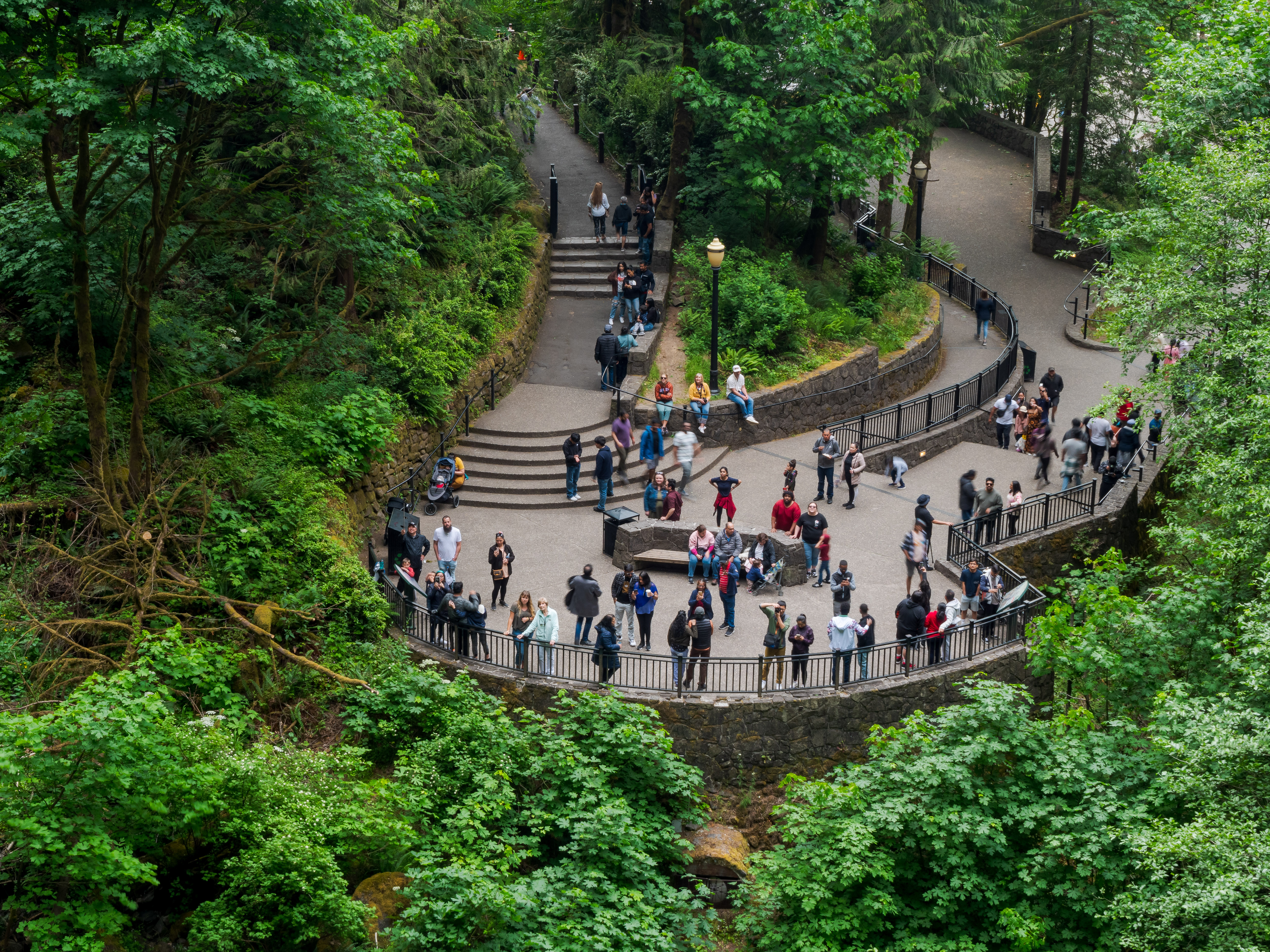 Vista House - это такая специфическая достопримечательность автомобильного века. Здание построили в 1917 году для привлечения автопутешественников. Тут можно было остановиться, перекусить, воспользоваться туалетом, сделать красивую фотографию, и двигаться дальше вдоль реки. Прошло 100 лет, и ничего не изменилось: приезжаешь, фотографируешь(ся), покупаешь магнитик и едешь дальше.