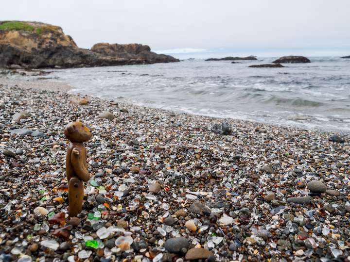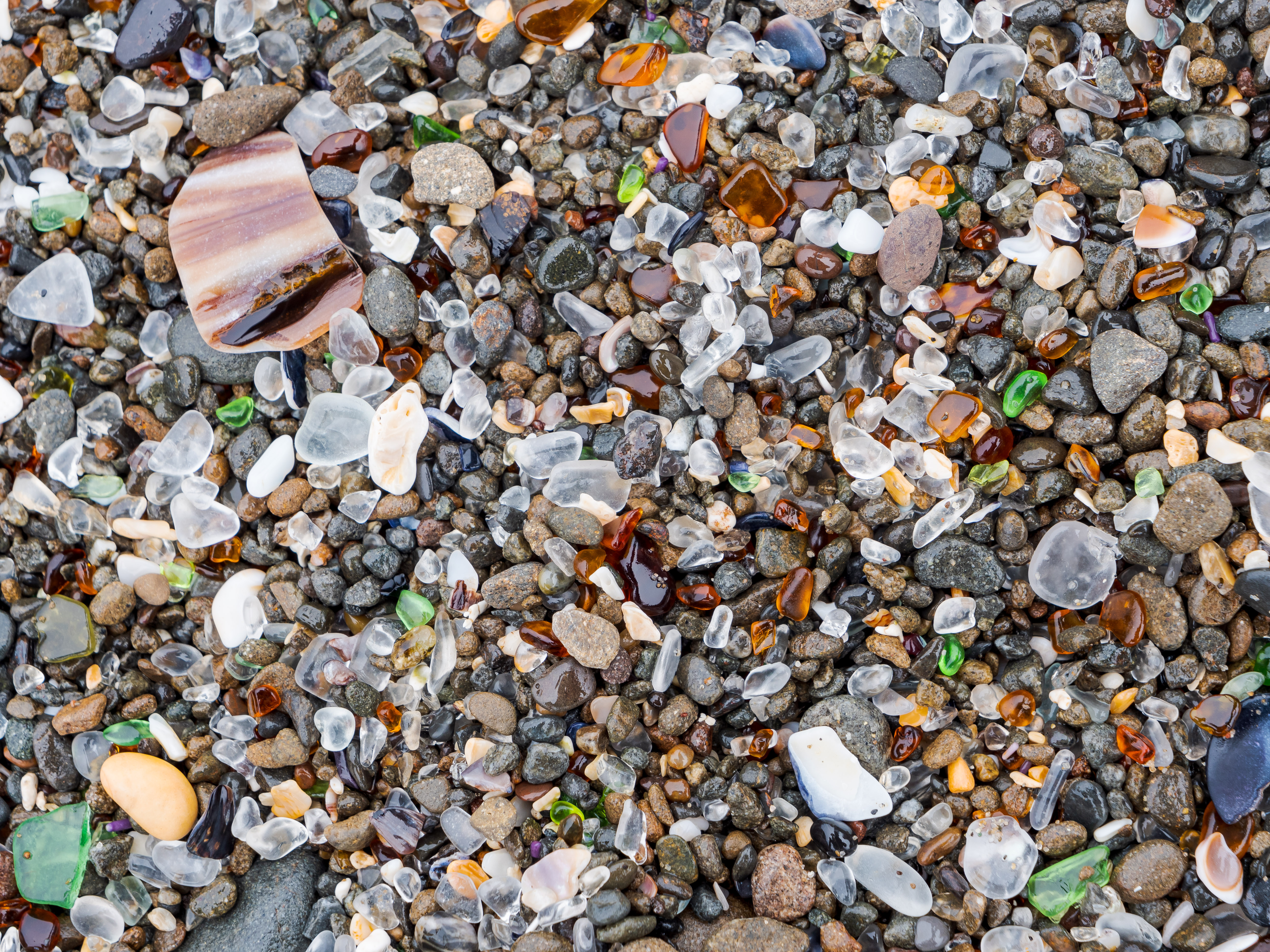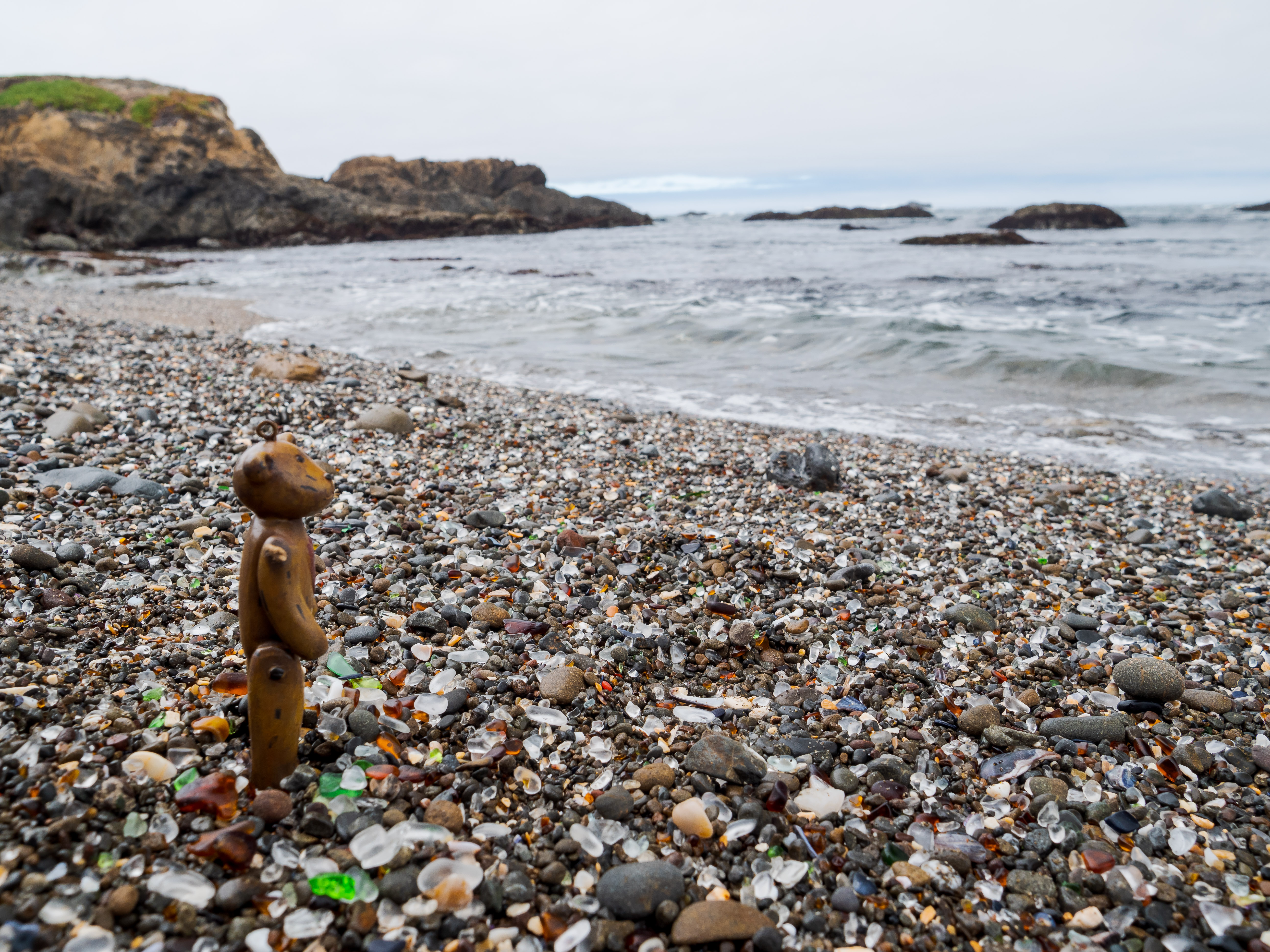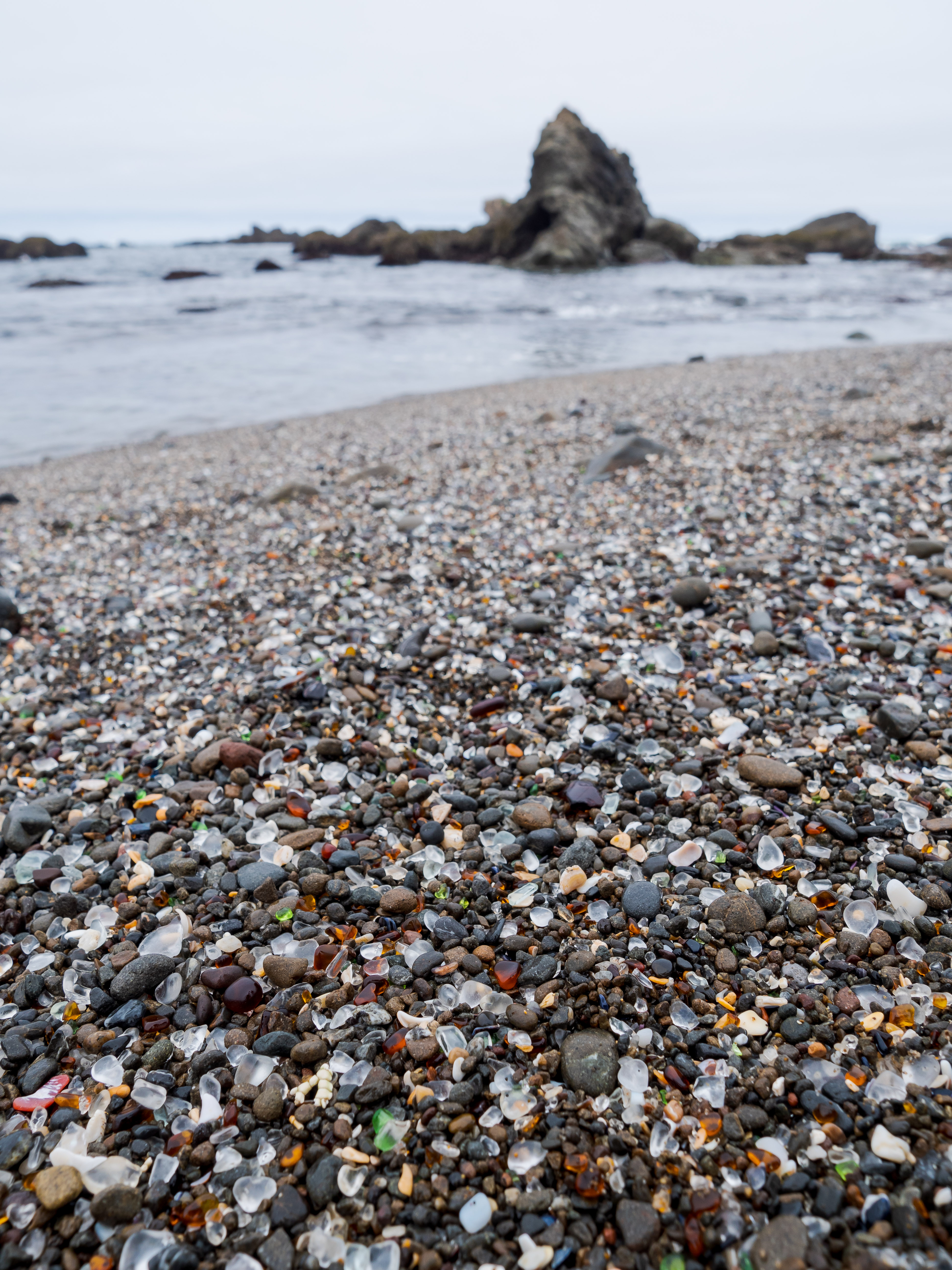 Одна из немногих "обязательных к посещению" достопримечательностей рядом с Мендосино - Стеклянный пляж. До 70-х годов тут, прямо на берегу океана, была свалка стекла и металлолома. Когда муниципалитет решил привести пляж в порядок, металлолом собрали и отвезли на переплавку, а стеклянные осколки остались. Постепенно морской прибой обкатал осколки до мелких стеклянных бусинок - так у пляжа появилось название.