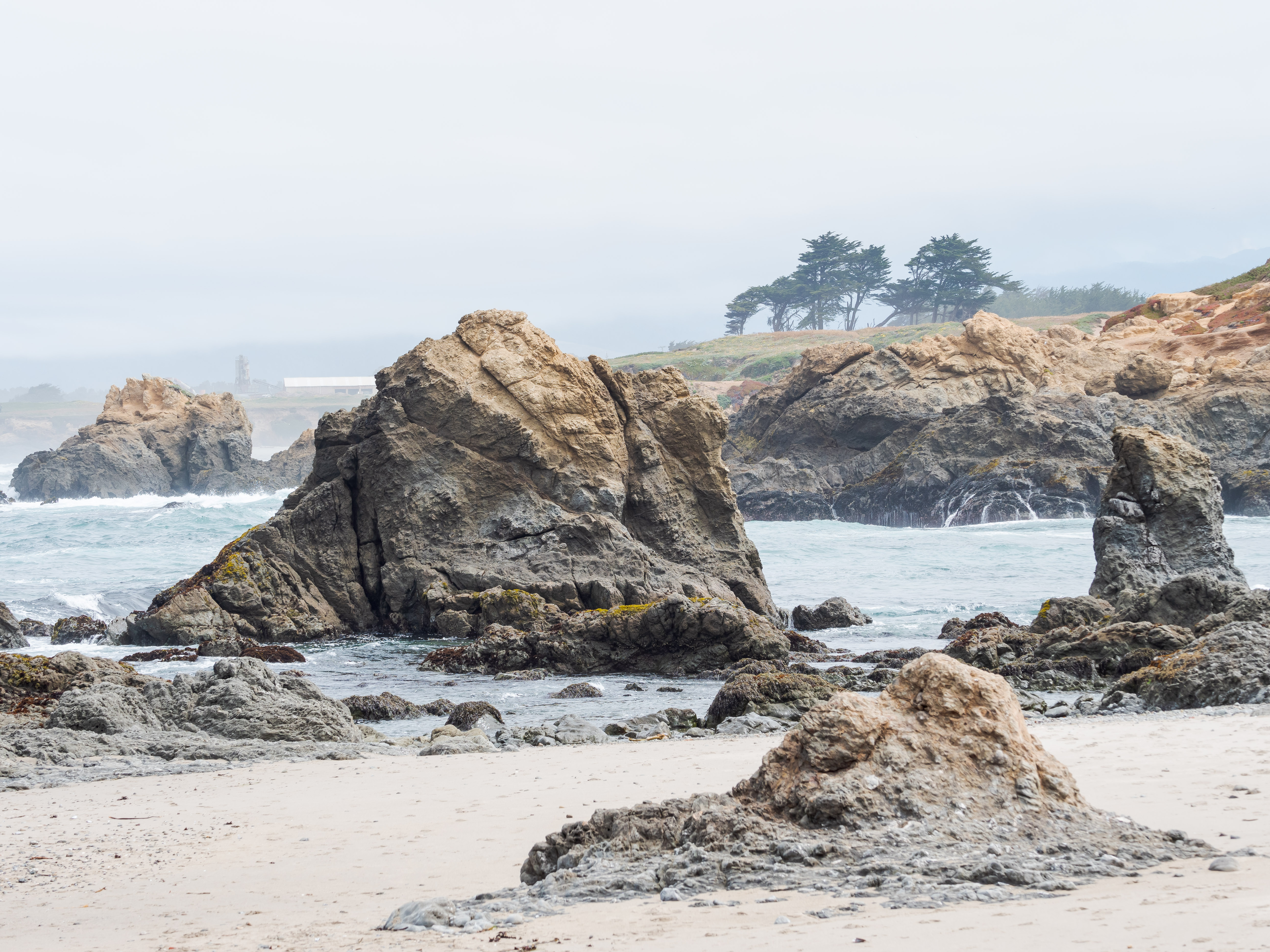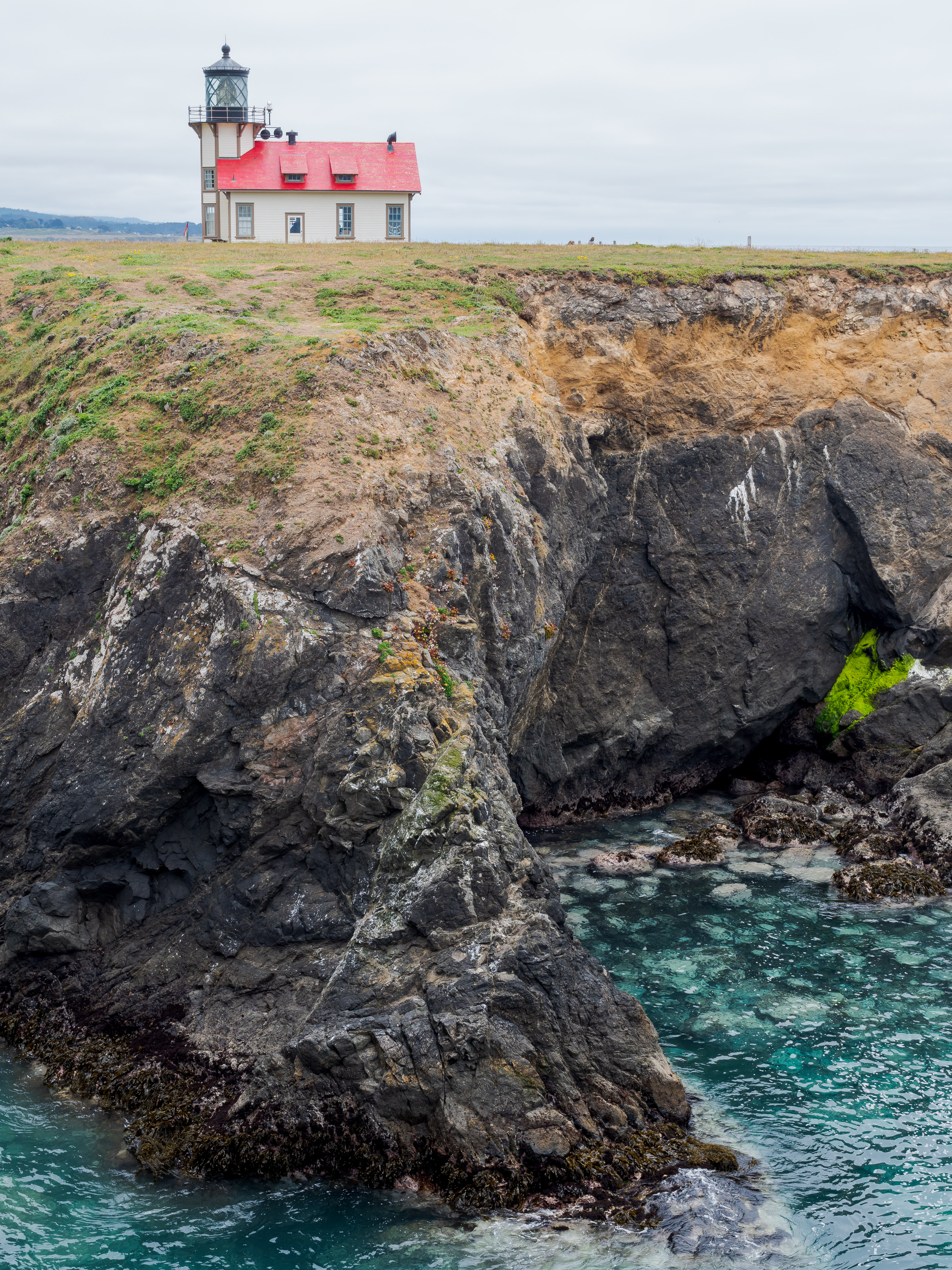 Между Мендосино и Стеклянным пляжем еще одна популярная остановка - маяк на мысе Кабрильо (Point Cabrillo). С исторической точки зрения он ничем особенно не примечателен, но расположен в очень живописном месте и аккуратно отреставрирован. Рядом с маяком - дом смотрителя, переоборудованный под мини-музей и сувенирную лавку. Кажется, что тут абсолютно нечего делать, но в поиске лучшего вида на маяк, наблюдении за морскими тварями в аквариуме музея, и выборе самого забавного магнита на холодильник можно легко провести час-полтора.