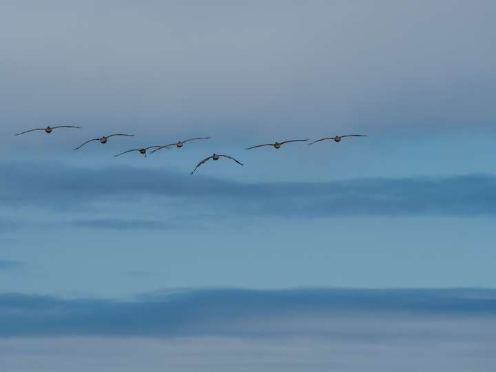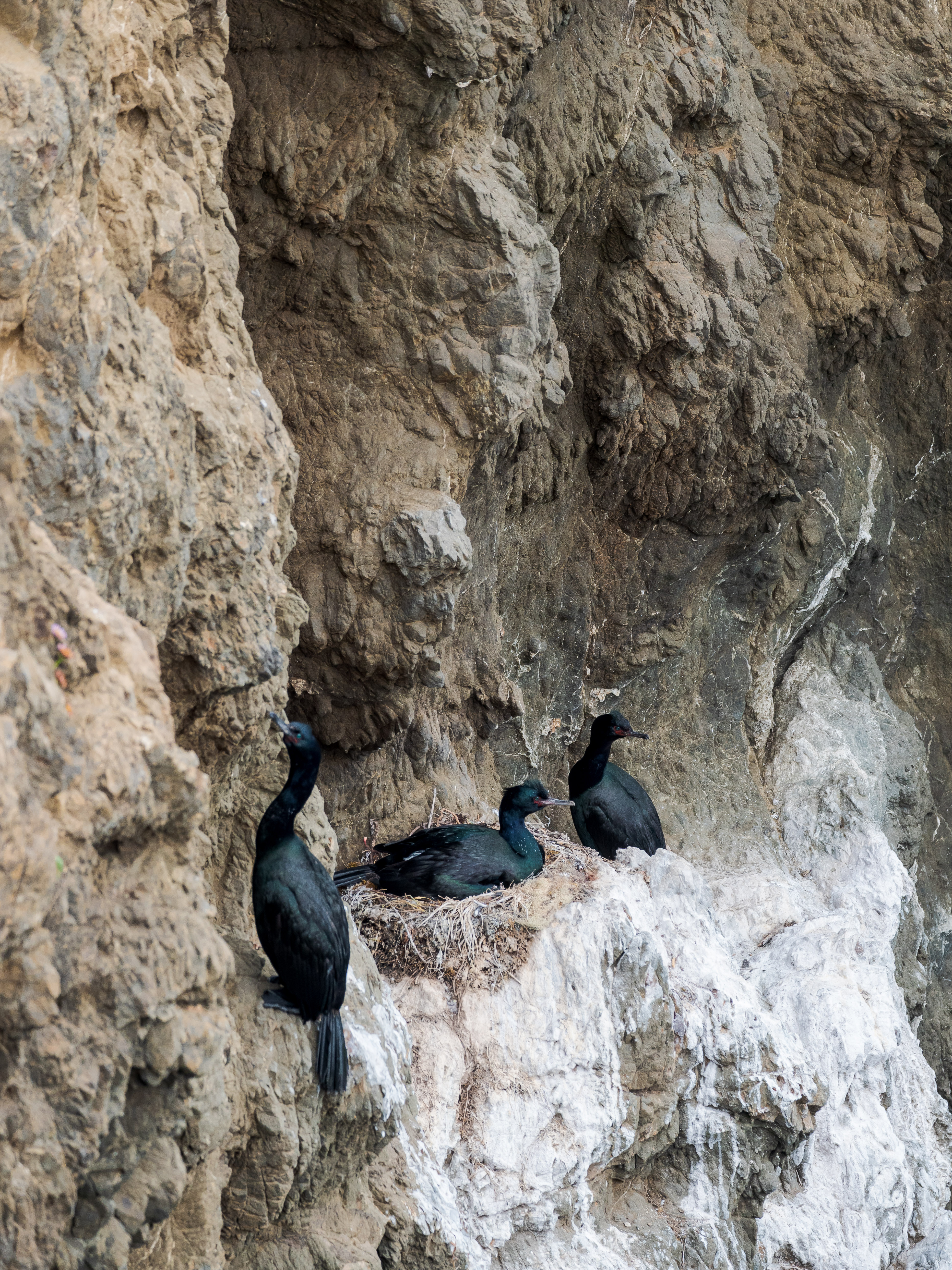 В целом береговая линия очень похожа на атлантическое побережье Ирландии. Чтобы найти отличия, нужно вглядываться в детали: тут больше песчаника и меньше базальта, много деревьев и нет валунов, которых разбросал по Ирландском берегу отступивший ледник. Над морем, кроме привычных чаек, летают бакланы и стаи пеликанов по 3-4 птицы.