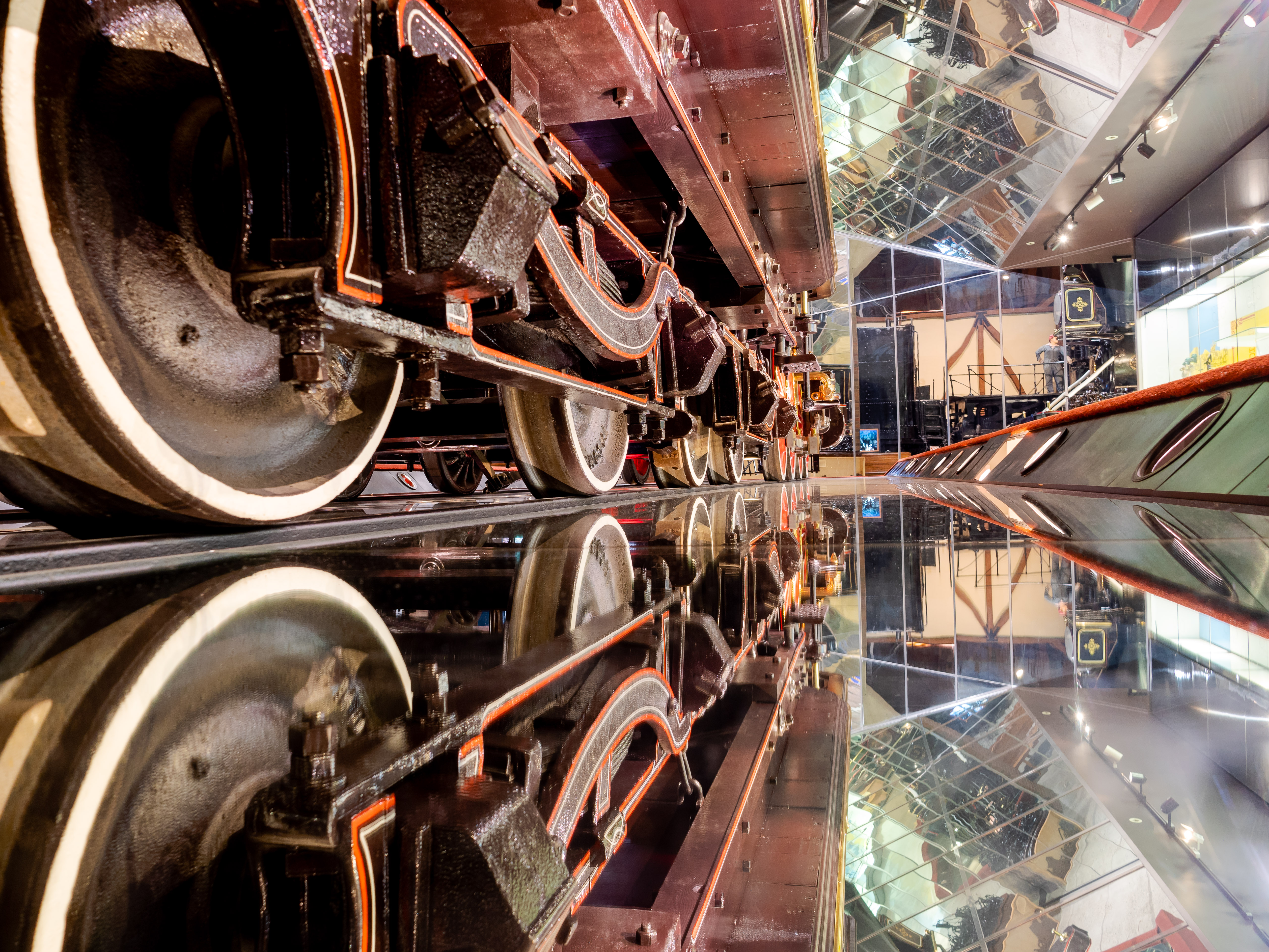 На нижнем этаже стоят локомотивы и вагоны в декорациях небольших железнодорожных станций рубежа веков. В некоторые вагоны можно зайти и поизучать внутреннее устройство. Смотрители музея (или волонтёры, сложно сказать) - в основном пожилые мужчины. Из разговоров с ними становится понятно, что они фанаты железнодорожного дела, и готовы часами про него рассказывать посетителям. Мы узнали: