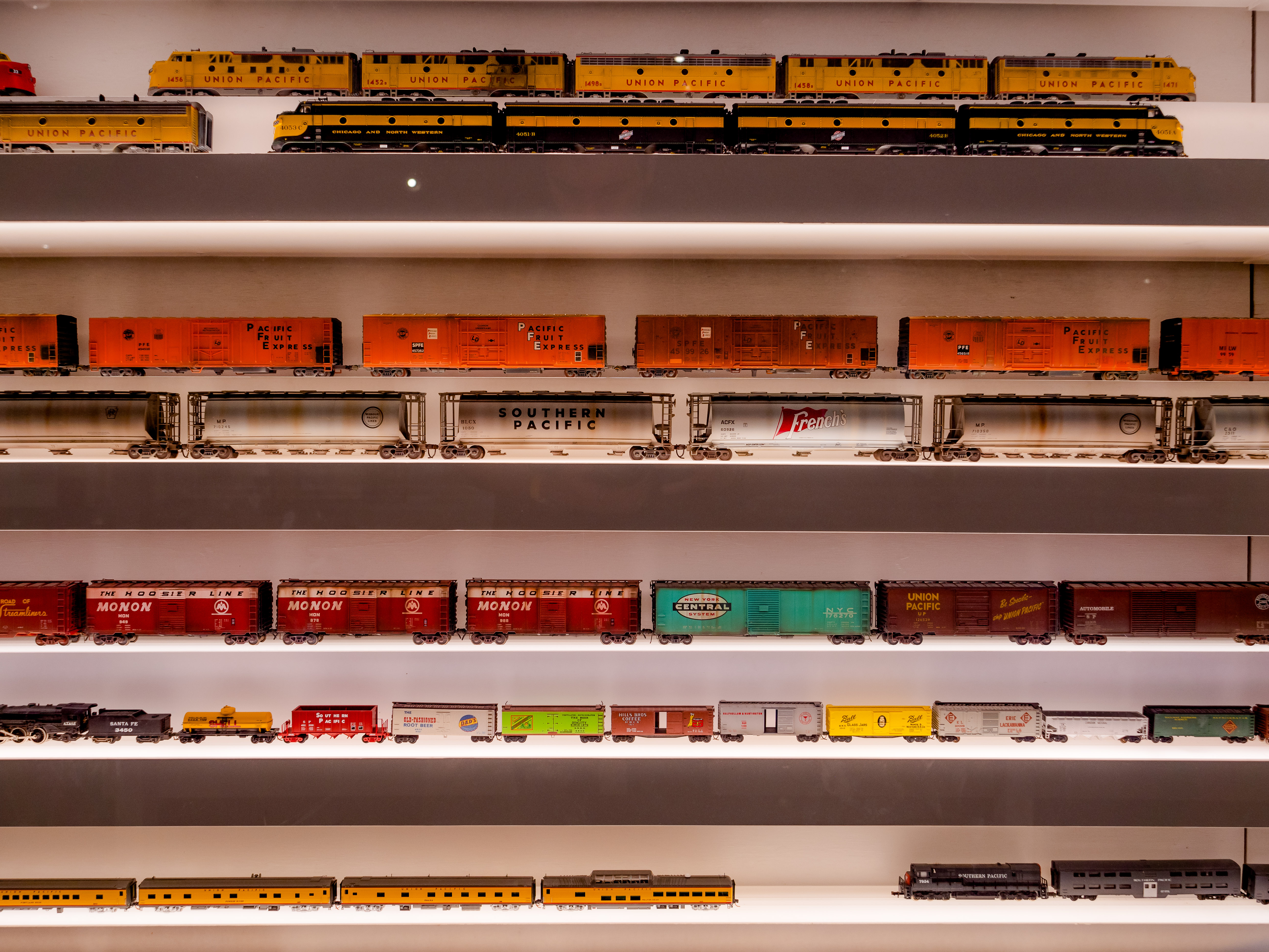 Настоящий рай для любителя железных дорог на втором этаже музея. Он практически полностью отведен под экспозицию игрушек и моделей в разных масштабах. Главный вау-эффект, пожалуй, вызывают детально проработанные диорамы заводов, терминалов, причалов и связывающих их железнодорожных веток. Тысячи часов и десятки тысяч долларов воплощенной любви американцев к "стальному хребту" США.