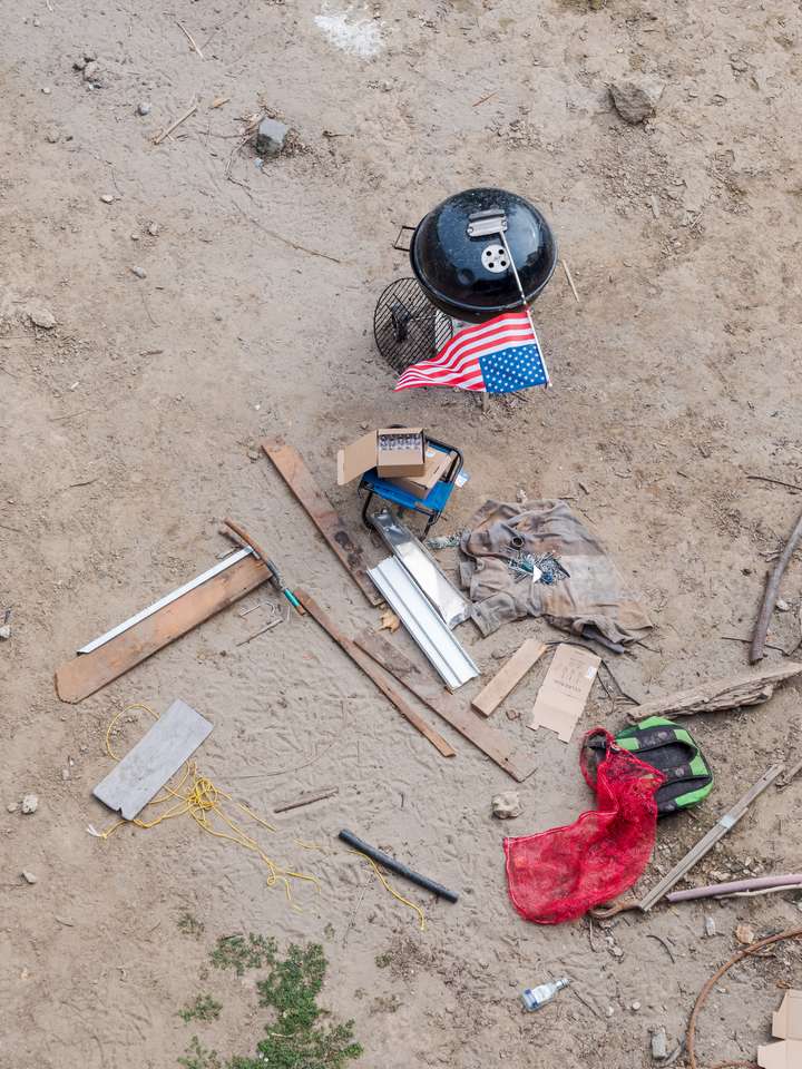Заметно, что люди живут в таких условиях месяцами, если не годами. Вокруг походной палатки-спальни появляются навесы из плёнки, выполняющие роль гостиных и кухонь. В них - столики, стулья, маленькие газовые плиты, и грили. Откуда-то протягиваются электрические провода, а вслед за этим люди обзаводятся телевизорами с игровыми приставками, музыкальными колонками, обогревателями и вентиляторами.